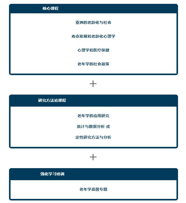 该项目还强调实践及应用研究,希望指导学生通过科学研究方法,总结出应对人口老龄化的行之有效的解决方案。另外,该项目围绕人口老龄化相关议题的讨论,着重于亚洲范围及背景下的探索,吸引了众多希望在老年学领域攻读博士学位的学子。