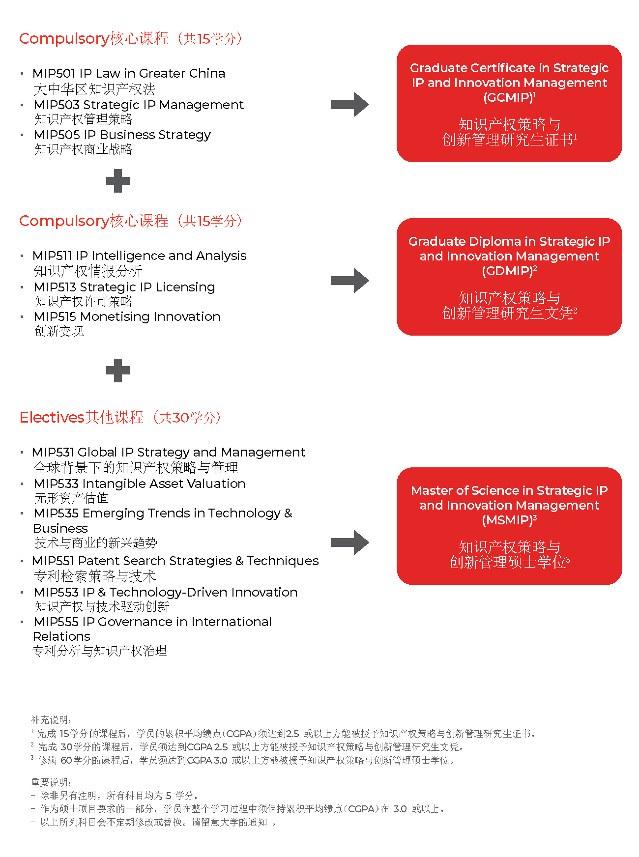 本课程的特色在于聚焦现实世界的挑战和行业相关性。通过案例研究、合作项目和与行业专家的互动,培养学生批判性思维和解决问题的技能,这些技能对于在新加坡、东盟和大中华地区担任知识产权策略和创新管理的领导角色至关重要。灵活的学习模式更适合希望在不影响本职工作的同时提升职业发展的在职专业人士。